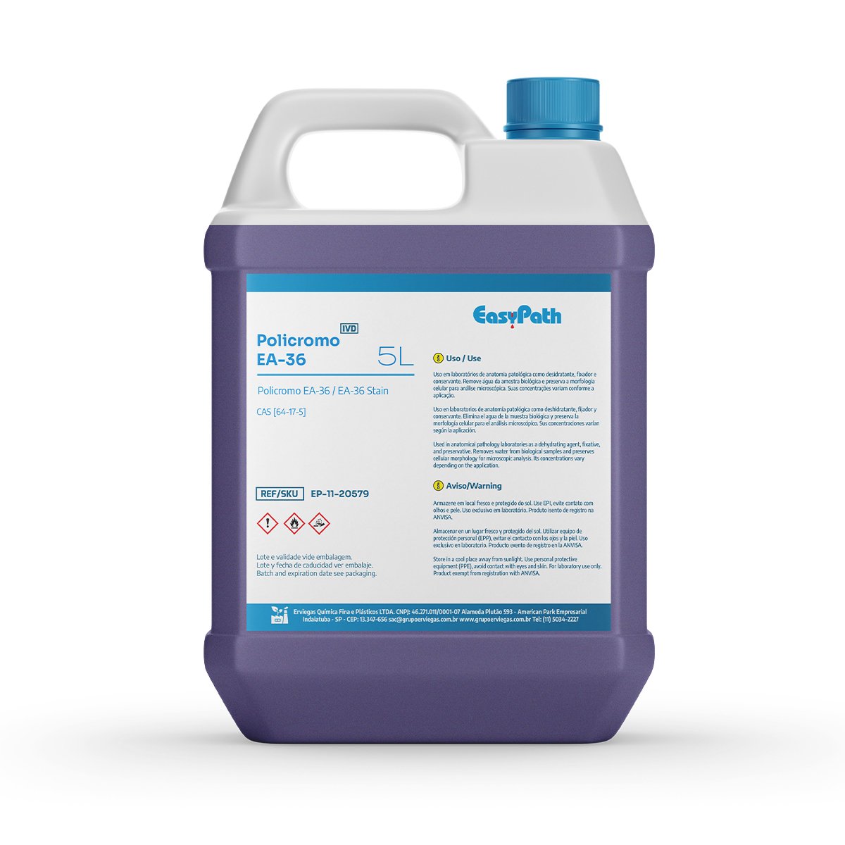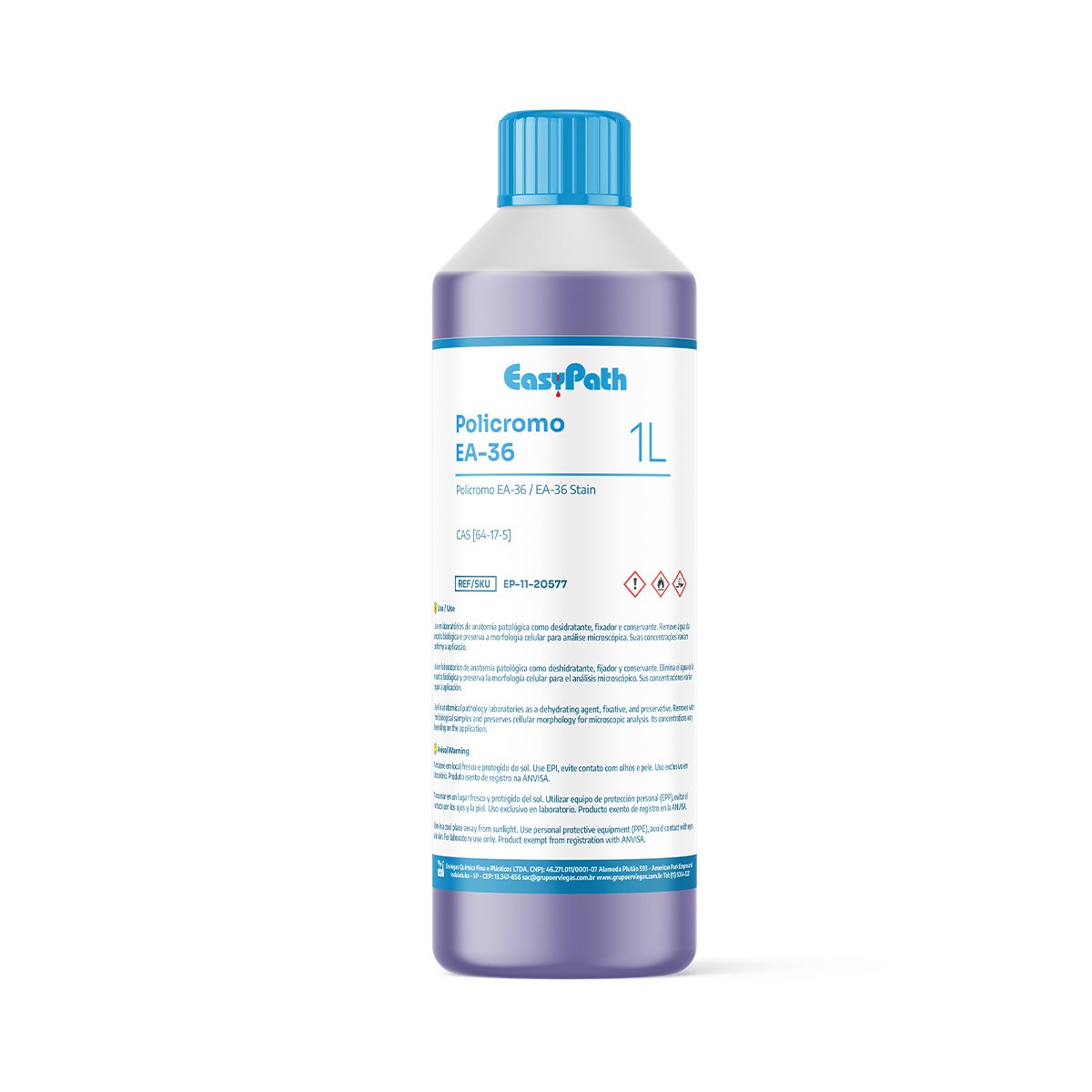 La tinción citológica EA-36 Polychrome de EasyPath está formulada para ofrecer la máxima definición y contraste en los análisis citológicos. Esencial en el método de tinción de Papanicolaou, combina tonos específicos para resaltar los matices citoplasmáticos y optimizar la interpretación diagnóstica.