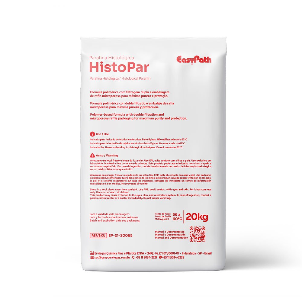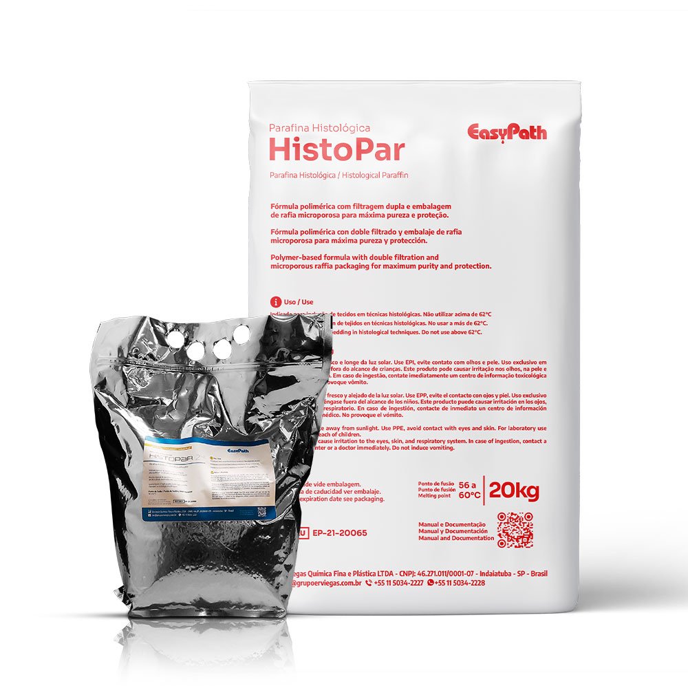 Adquira a Parafina Histológica Granulada HistoPAR disponível em embalagens de 2 kg e 20 kg. Produto certificado EasyPath, desenvolvido para laboratórios que precisam de resultados consistentes em histologia e histopatologia. Solicite sua cotação online sem custo agora mesmo.